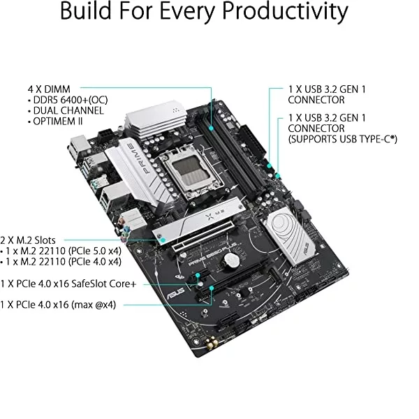- Socket AMD AM5 : compatible avec les processeurs d’ordinateurs de bureau Ryzen 7000 Series