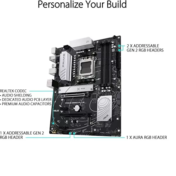 - Éclairage Aura Sync RGB : connecteurs Gen 2 adressables intégrés et connecteur Aura RGB pour bandes de LED RGB, facilement synchronisés avec le matériel compatible Aura Sync