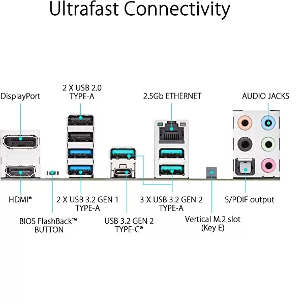 - Connectivité ultra-rapide : M.2 PCIe 5.0, Realtek 2.5Gb Ethernet, USB 3.2 Gen 2 Type-C, USB 3.2 Gen 1 Type-C à l’avant, support USB4